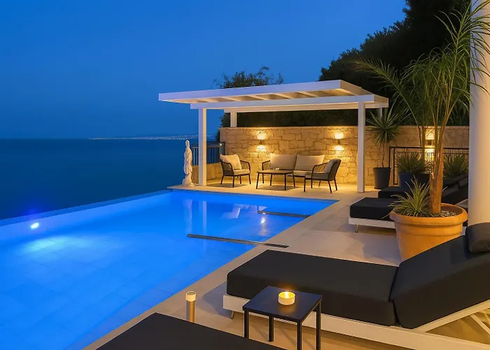 Aquamarine Villa is approximately 10 minutes by car from Pantokrator and around 10 minutes' drive from from Kerasia beach. There is a kitchen with a microwave, an electric kettle and a dishwasher while 3 bathrooms are included as well.